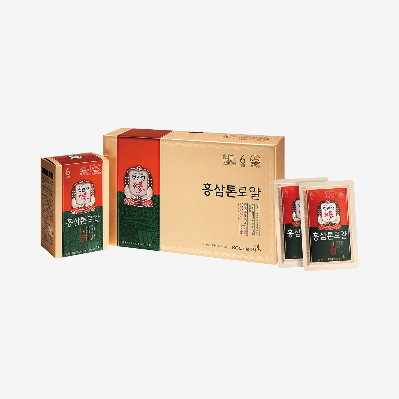 상위 2% 수준의 고급 홍삼인삼이 함유된 프리미엄 제품. 엄격한 등급 기준에 따라 선별한 홍삼에 녹용과 희귀버섯 등의 전통 소재(부원료)를 더했다.